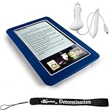Best Kroo Skin Case For Barnes & Noble Nook E-Reader (Navy, Blue, Dark Blue) + Includes a 4-Inch eBigvalue Determination Hand Strap + Easy Travel Car Charger